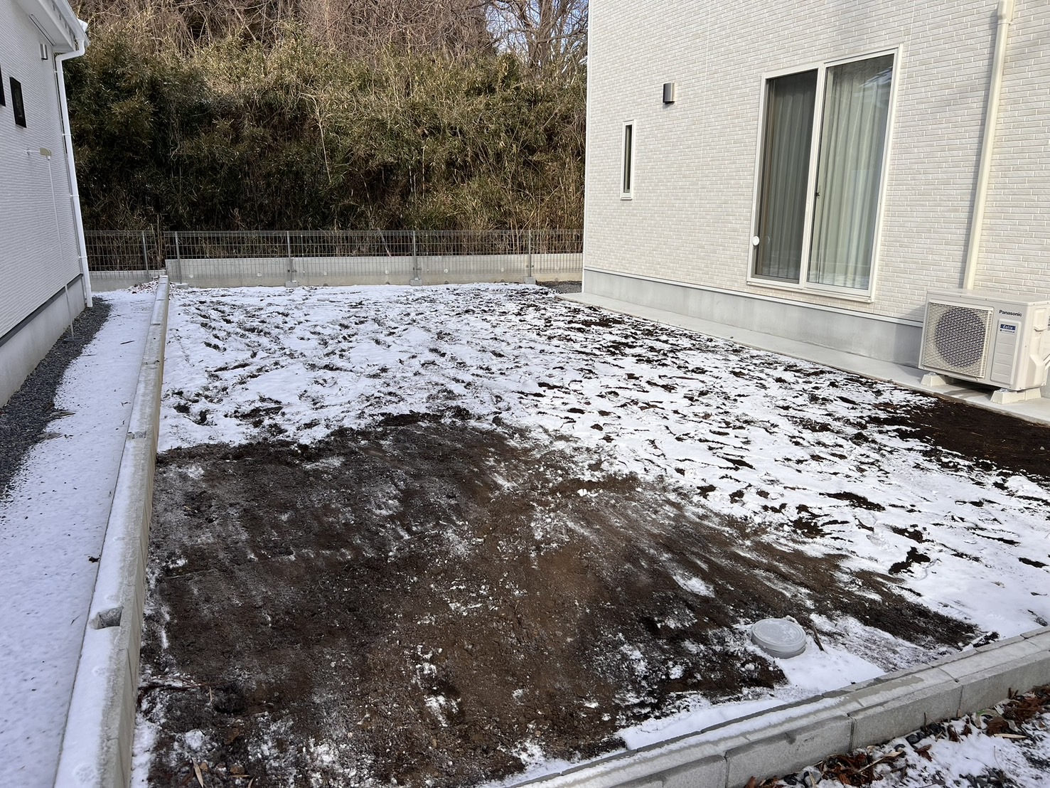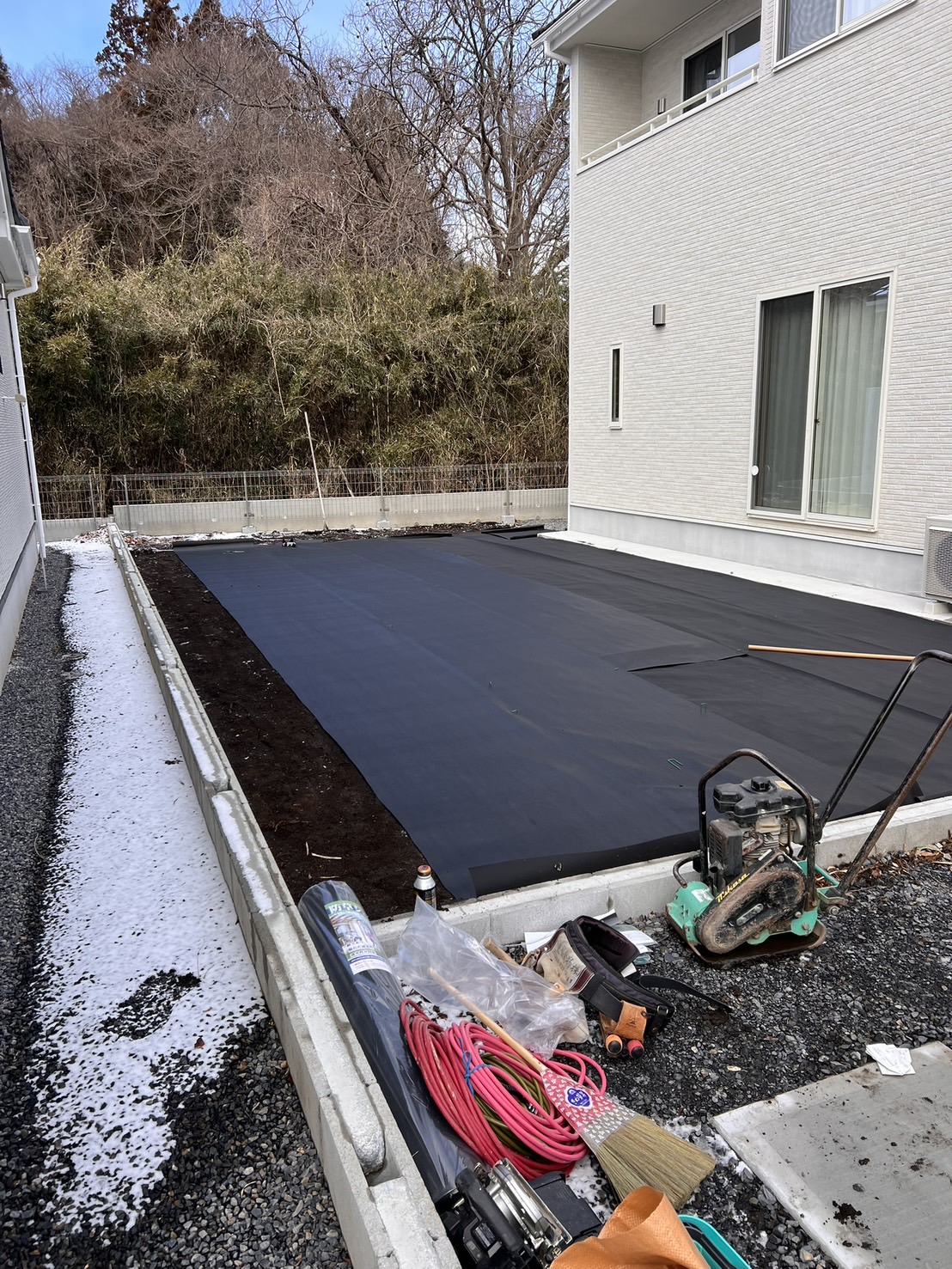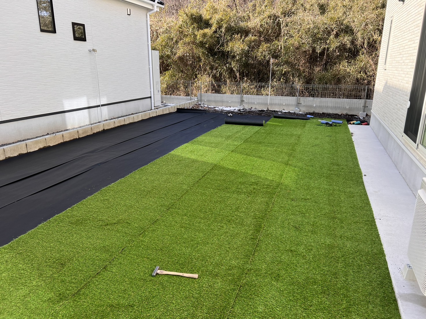 step2 土間シートを敷いたら人工芝を敷いていきます