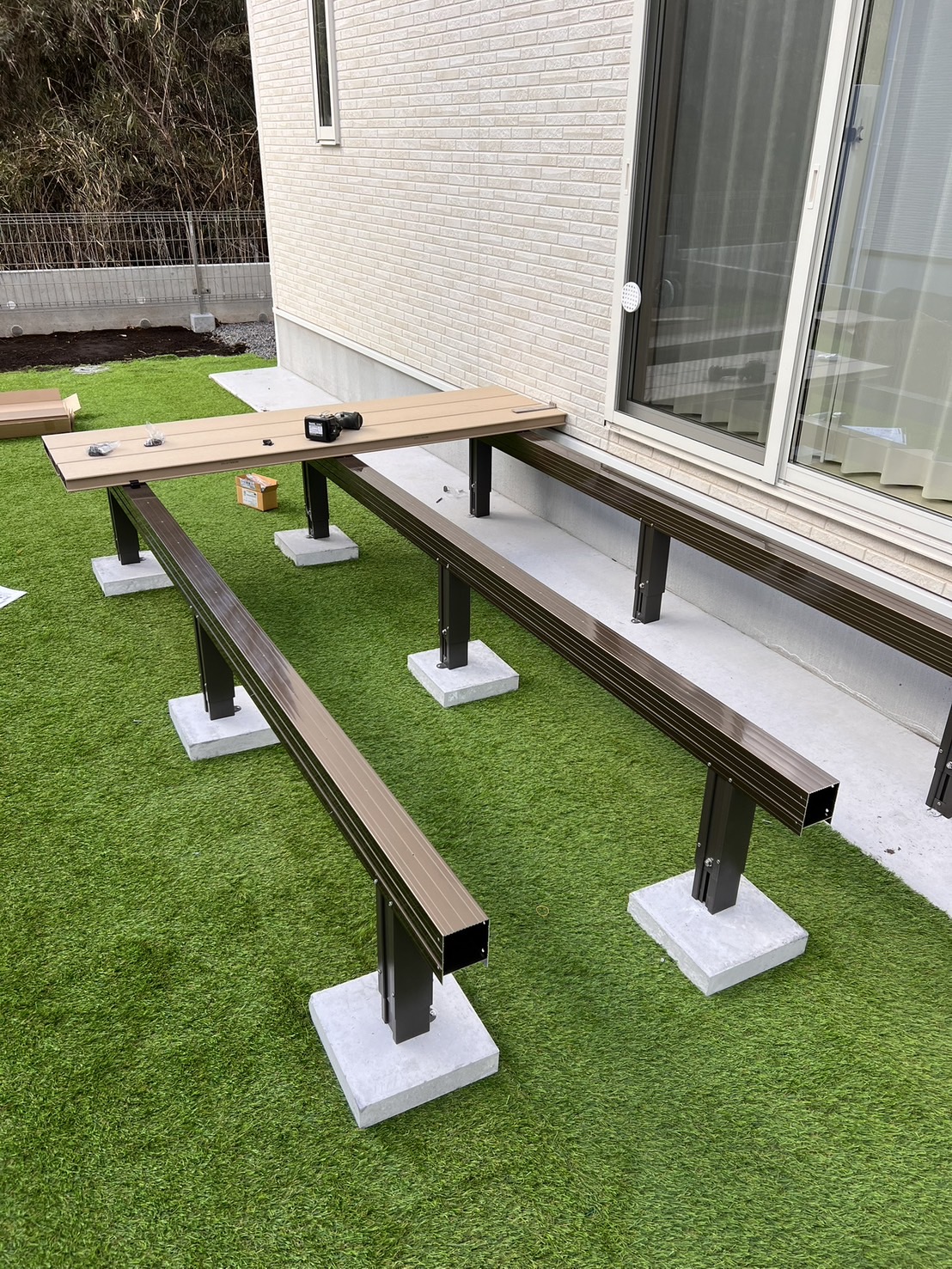 step3 次にウッドデッキを施工していきます 架台を設置して板を取り付けていきます